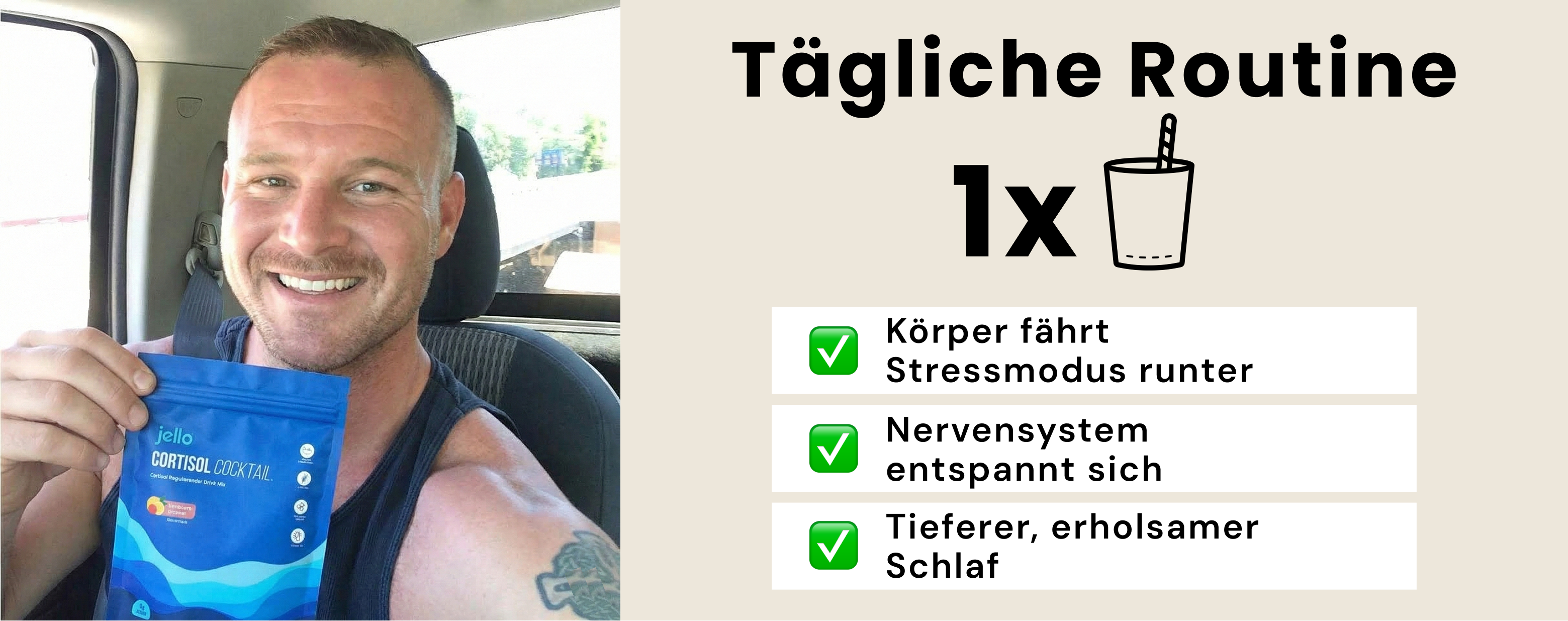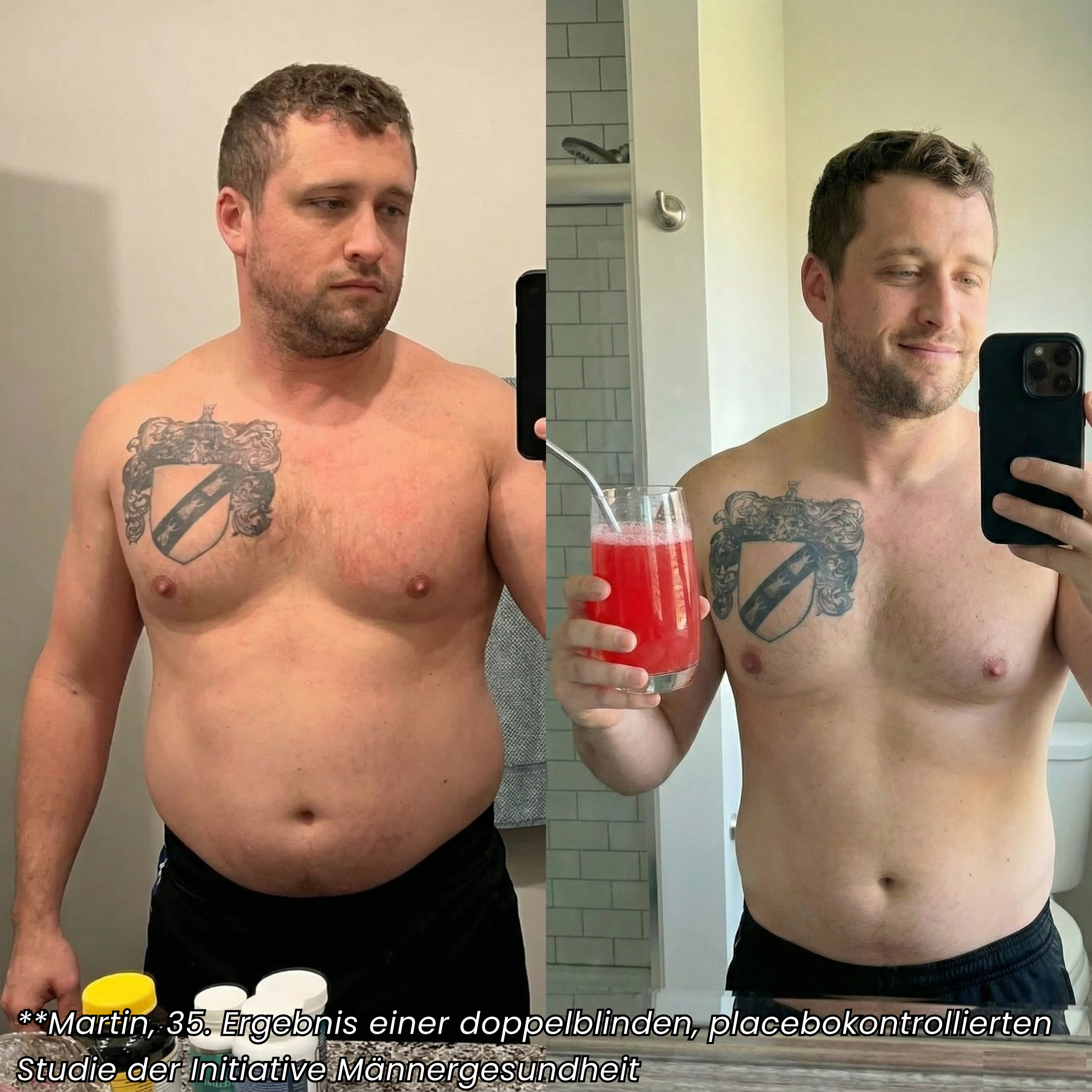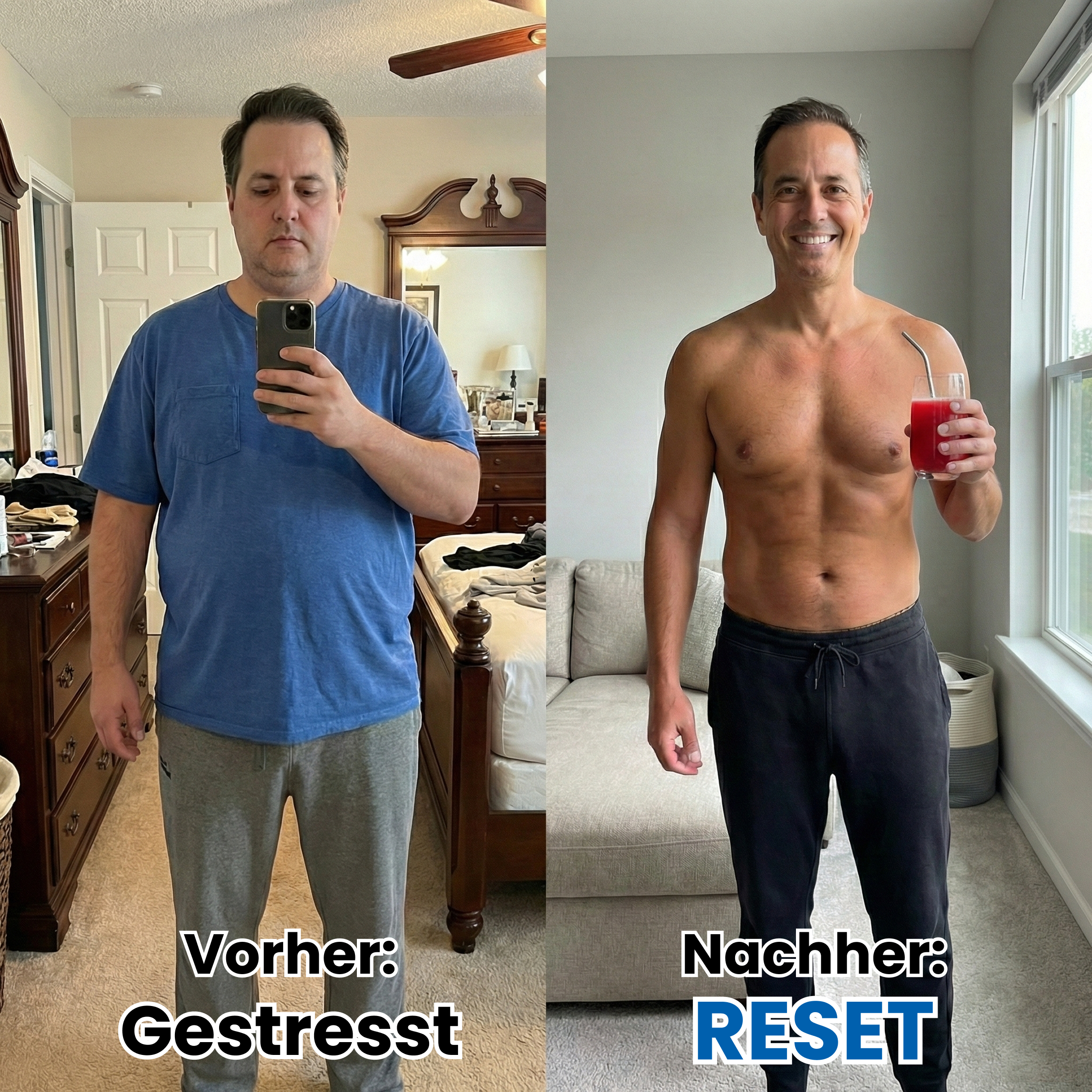 Deutlich weniger Bauchfett. Mehr Kraft beim Training. Bessere Laune und Geduld. Partner und Kollegen bemerken Veränderungen. Das Testosteron erholt sich messbar.